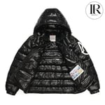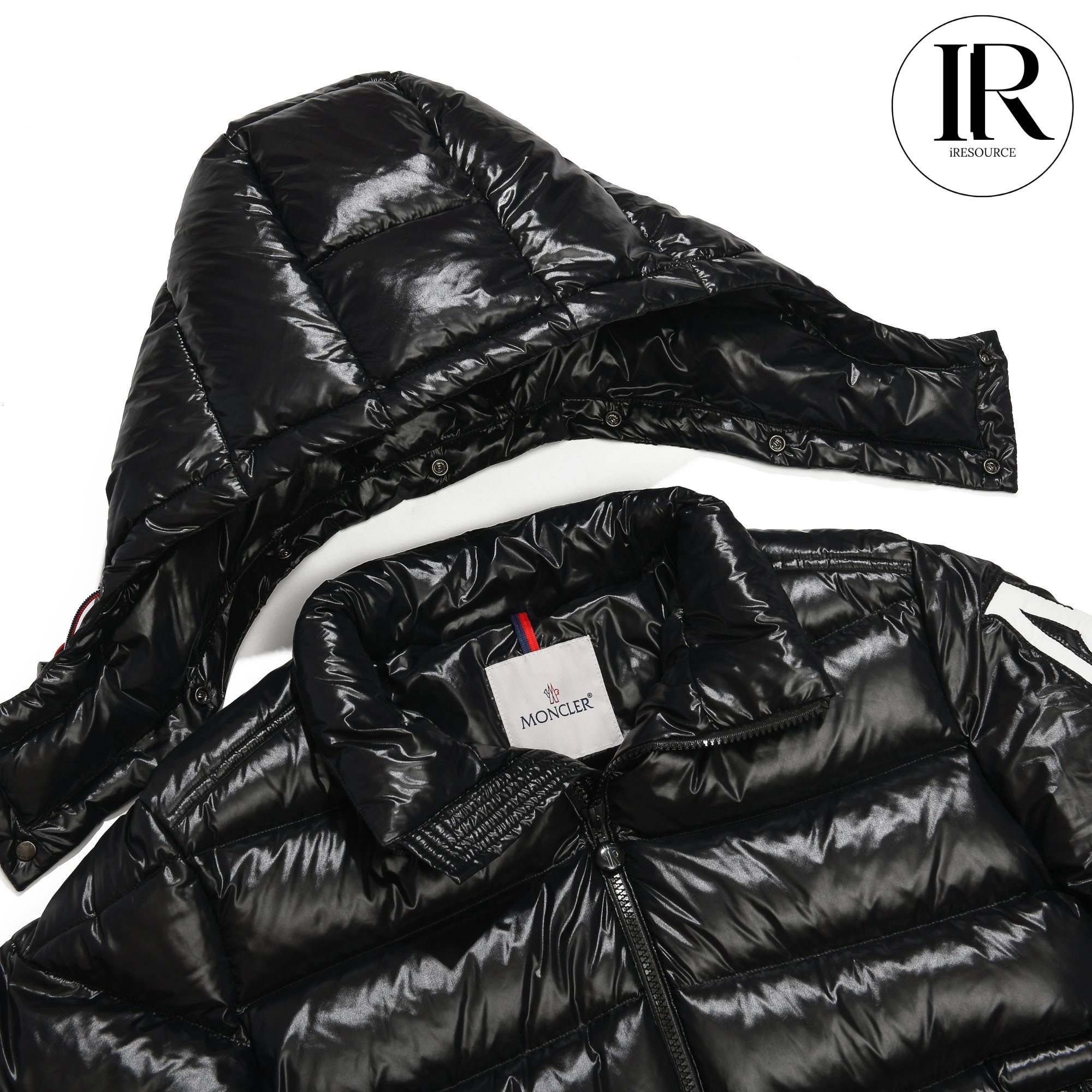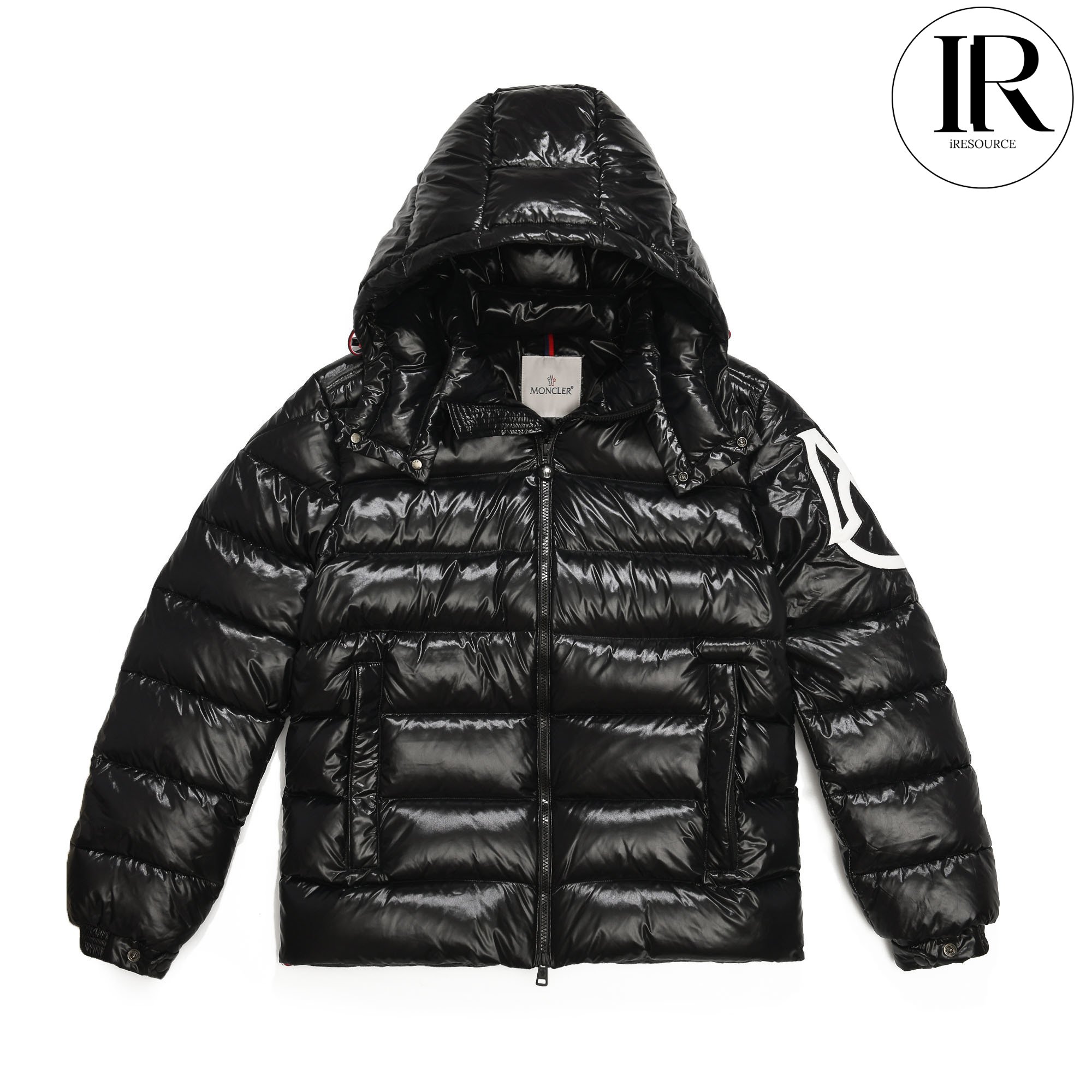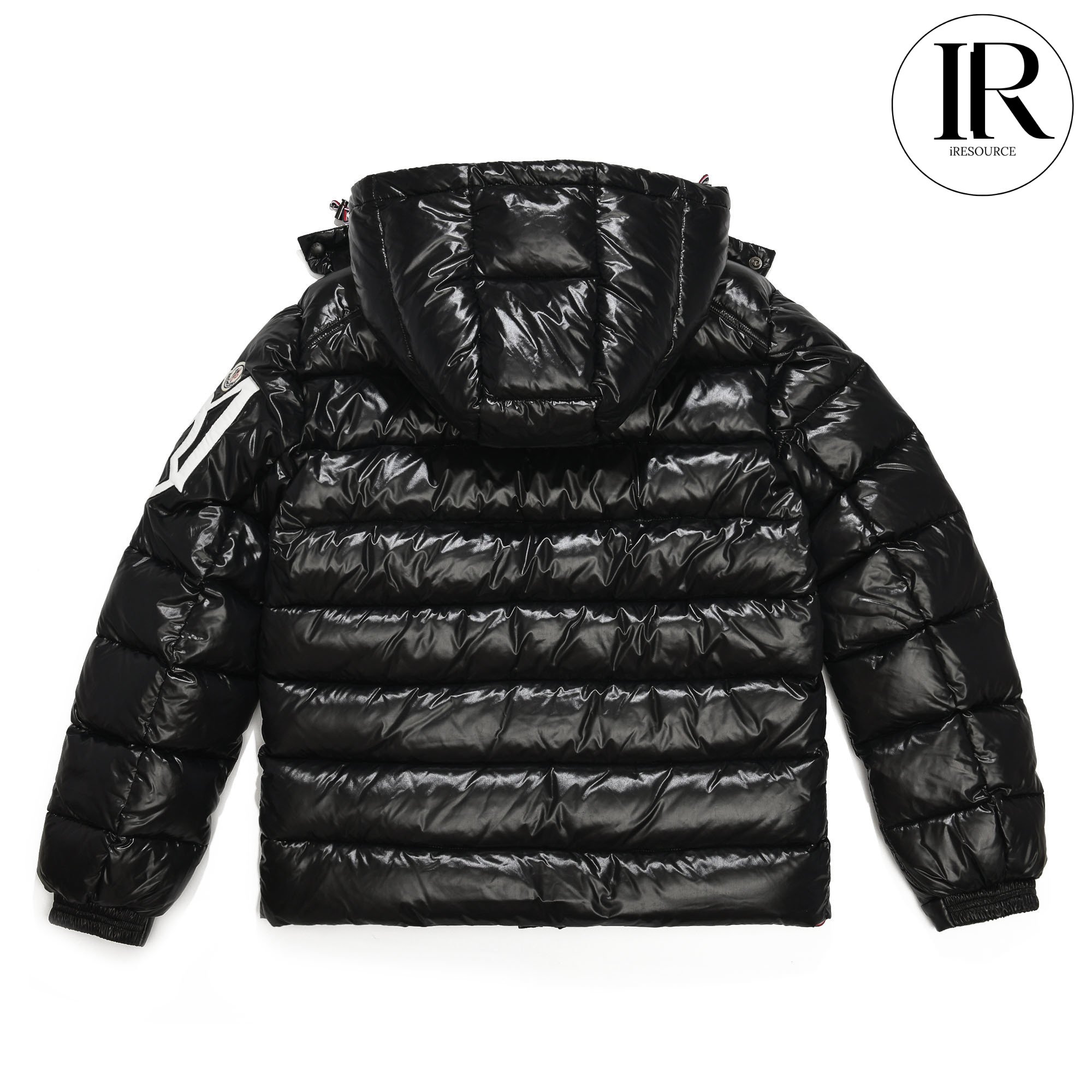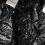 Moncler Black Glossy Hooded Puffer Jacket with Large Arm Patch