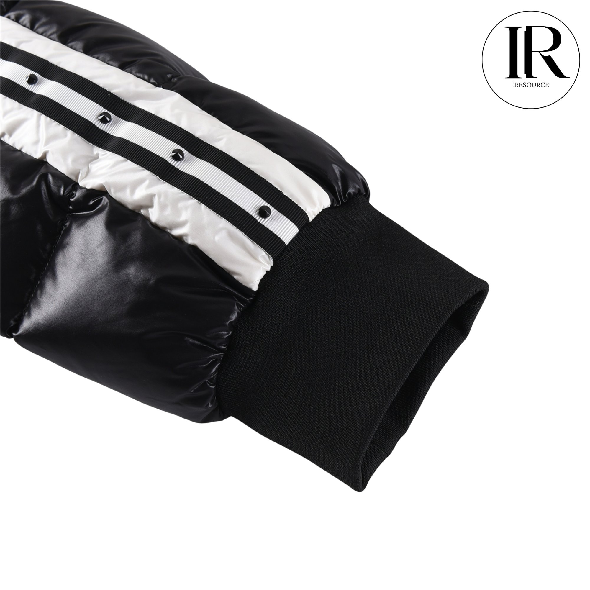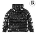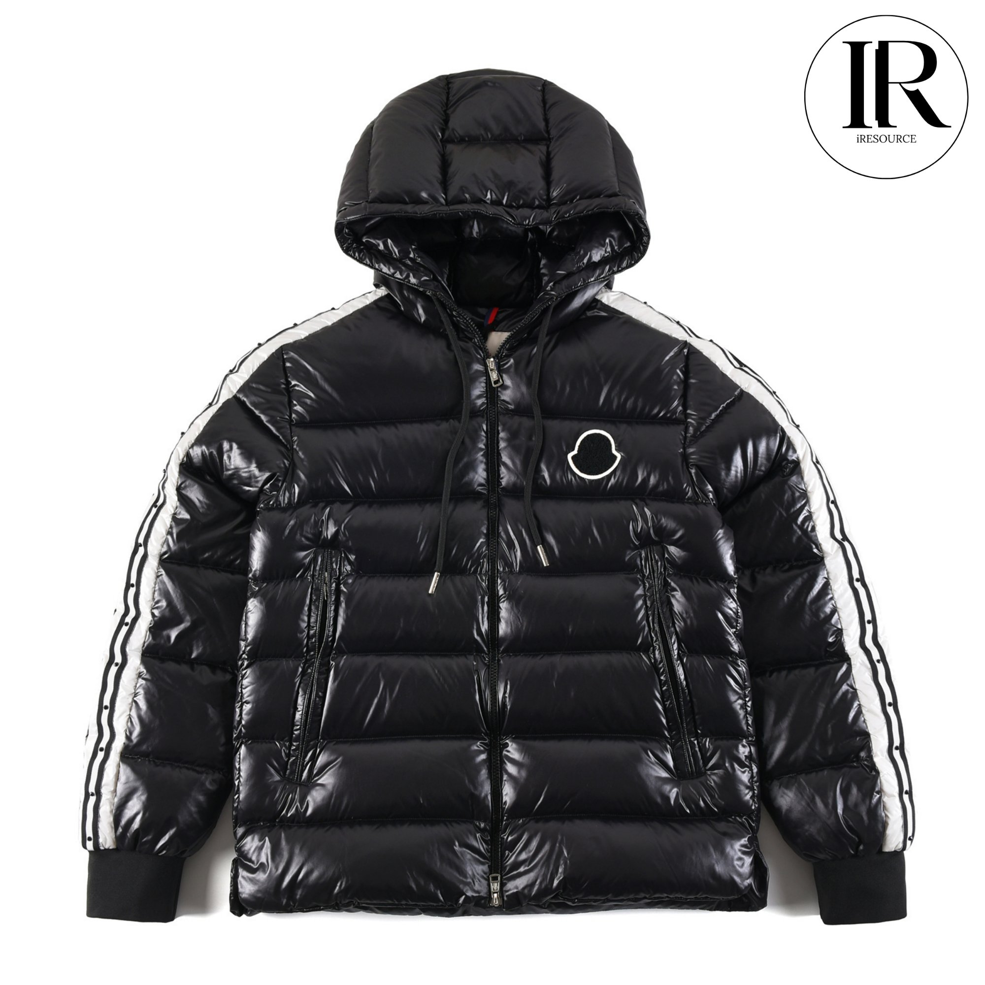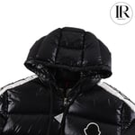 Moncler Black Shiny Down Puffer with Side Stripe Detail